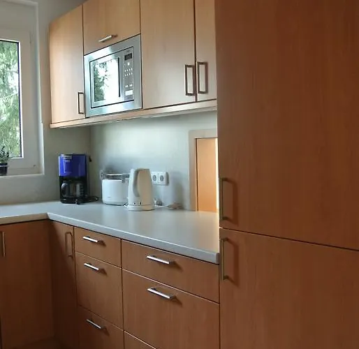 O equipamento de cozinha se caracteriza em microondas, chaleira elétrica e peças de vidro. O aeroporto mais próximo é em Frankfurt am Main, a cerca de 40 km. O local também oferece bicicleta para alugar.